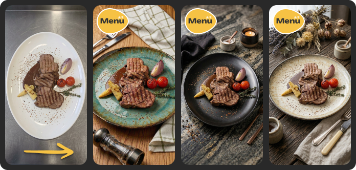 Вам не нужно нанимать студию, выставлять сложный свет и делать профессиональную цветокоррекцию, чтобы меню на экранах выглядело как у мировых франшиз. Эту задачу берет на себя искусственный интеллект.